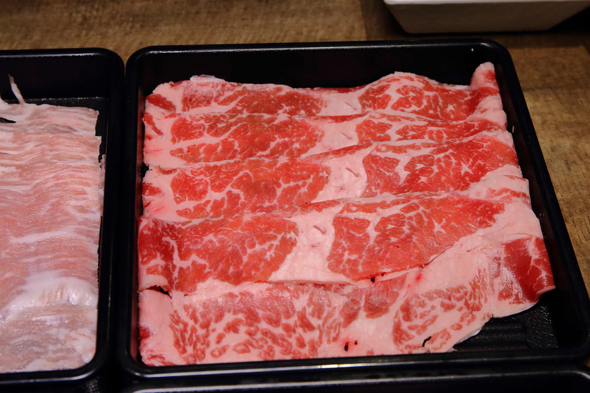 下鍋前給大家看一下和牛美麗的色澤,大理石花紋的油花完美分佈