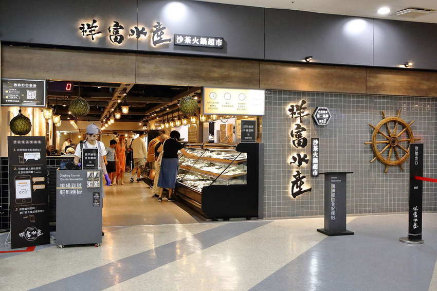 祥富水產沙茶火鍋超市新店家樂福店,目前是第七間分店,地點位於家樂福1F