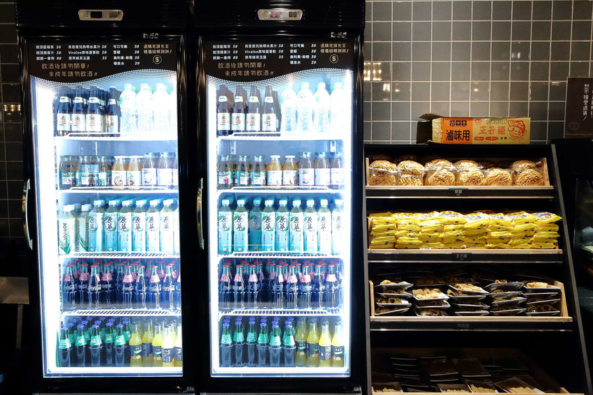 冰箱內有自取的飲料區以及麵食區、醬料區