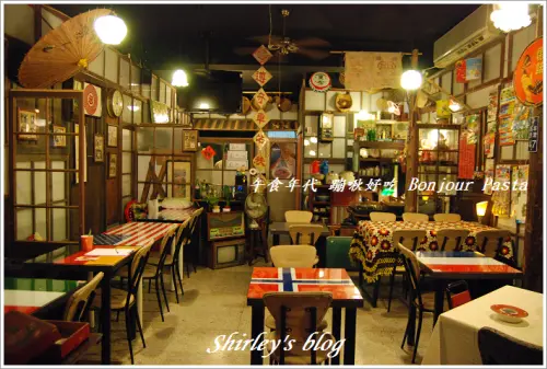 因為這店面實在是太搞怪、太吸睛、太有效果了,除了拿相機一直猛拍,我也湊近瞧了一下店裡是有賣什麼碗糕,原來以為賣的是中式餐點之類的,但沒想到卻賣義大利麵、燉飯、甚至還有披薩,這一下我更有興趣了,再看甜點居然跳tone的賣起芝麻湯圓,還有挫冰,然後更絕的是也賣炸雞、薯條等炸物,我里累~~這一下我開始懷疑老板到底是多大歲數的人是中國人還是外國人XD