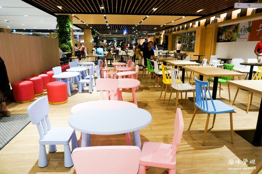 中間美食用餐區,多了小朋友的可愛繽紛座椅,實在很用心呢!!
