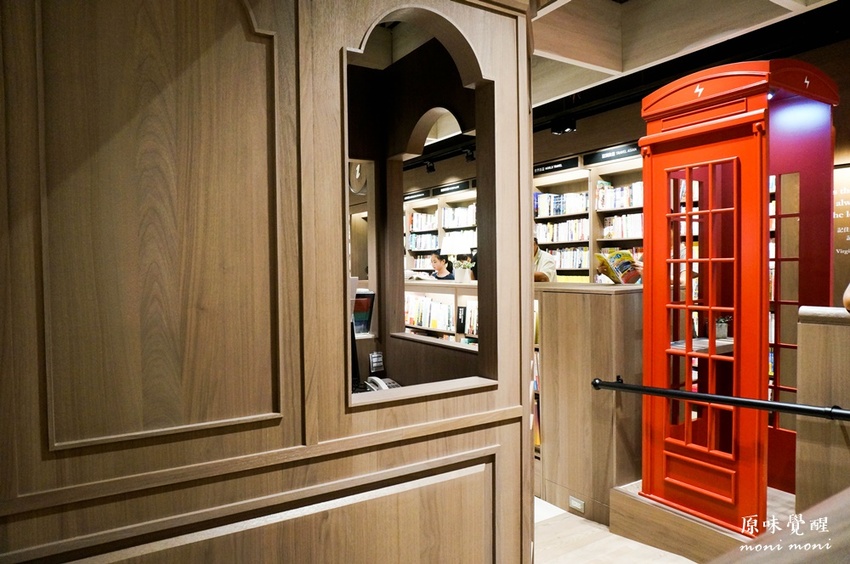看到紅色的店門口還不覺得,沒想到一走進就看到充滿英倫風的造景,以歐式劇院售票亭為概念打造的讀者服務站,英國最著名的電話亭都搬來了!!相信又是另一個打卡熱點啦!!