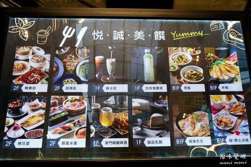 美食集散介紹圖,其實悅誠廣場的美食區大致上都是外面有的品牌,不過基本上繞了一圈覺得,美食還真不少,看來以後又是另一個朋友聚餐、家庭聚餐好好覓食的地點。