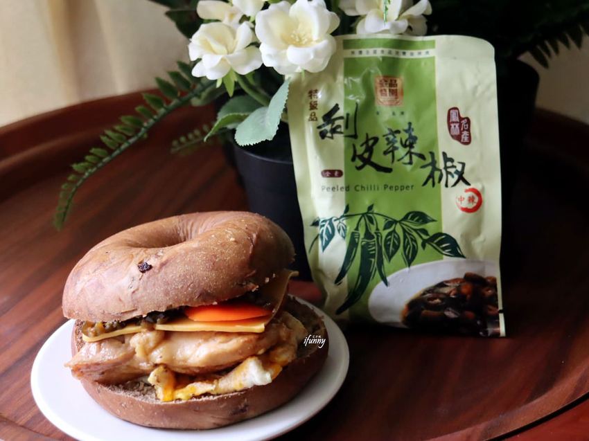 重點是這剝皮辣椒實有有夠好吃的,微酸甜後勁帶辣的滋味,讓這個三明治美味更升級啊!