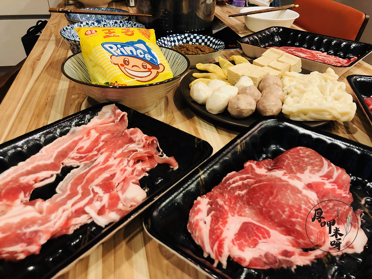 過去曾多次吃過雅香石頭火鍋,這次剛好朋友要到家裡吃飯,也看到網路剛好有宣傳雅香推出宅配方案,三到四人份特價只要899元,內含石頭火鍋湯底、獨門黃金沙茶醬、PR級霜降牛、1/CH級低脂牛、豬梅花、豬五花、起司球、蛋餃、貢丸、烏龍麵、王子麵、凍豆腐,全部排開放滿整桌,雖然我們只有4大1小吃,但真有小圍爐的感覺。