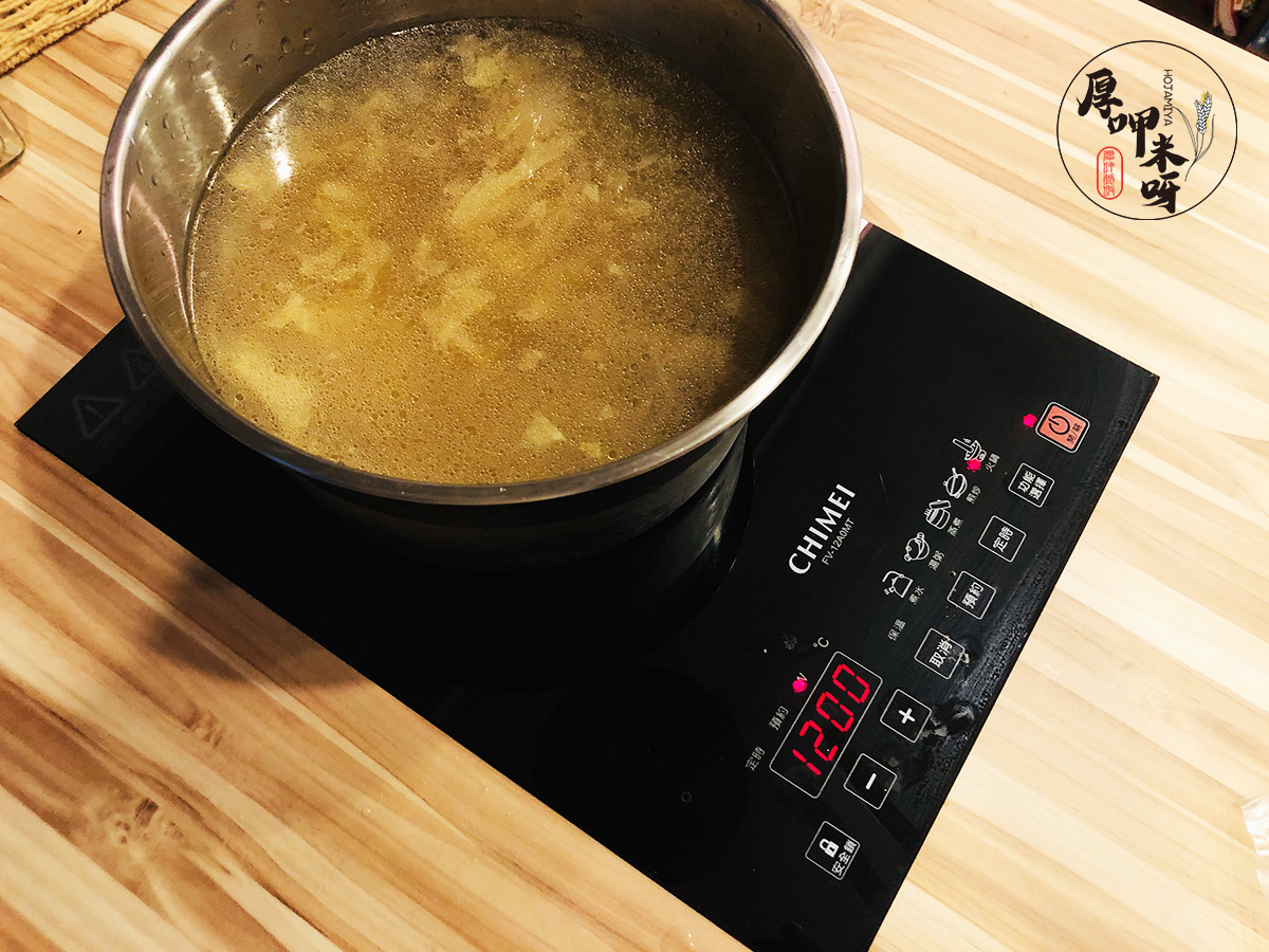 配料中蔬菜不多,我們也另外準備了蔬菜入鍋,心中只覺得湯頭好,真的煮什麼料都好吃,雅香的湯底帶有很多的白菜跟洋蔥,是濃縮湯頭需要加清水1000CC稀釋,如果大家有買,可以依自己口味調整水量,我使用1000CC的水煮滾,香氣明顯隨著煮滾的熱氣飄香,還沒用餐就覺得食慾被勾起。