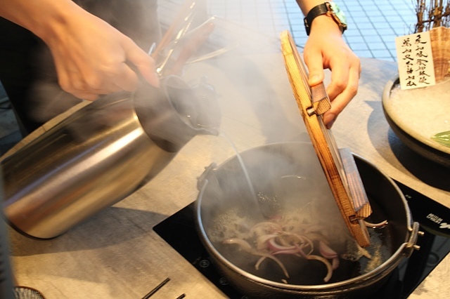 由服務人員桌邊代煎服務,
