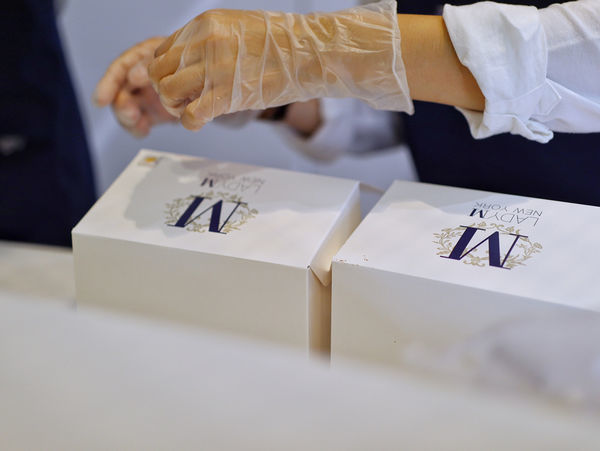 紙盒貼上相對應的口味貼紙,附叉子/小保冰袋。