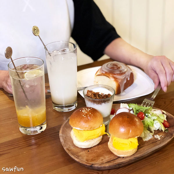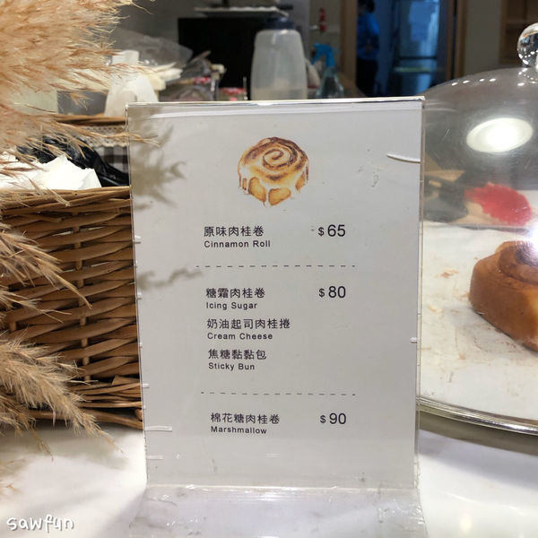 蛋糕櫃會放今日甜點跟肉桂捲口味