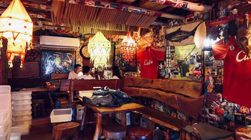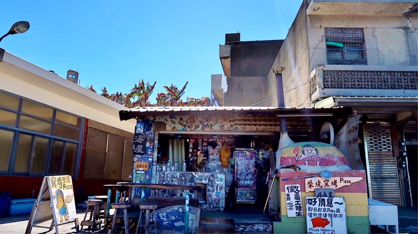 海屋Cafe門口就是火(窯)烤的區域及戶外用餐區,一走進海屋,就看到很有個性且有熱情的老闆與進門的客人打招呼,一邊聽著伍佰的台式搖滾歌曲,看著室內隨興的裝潢擺設,真的很有老闆獨特的風格。