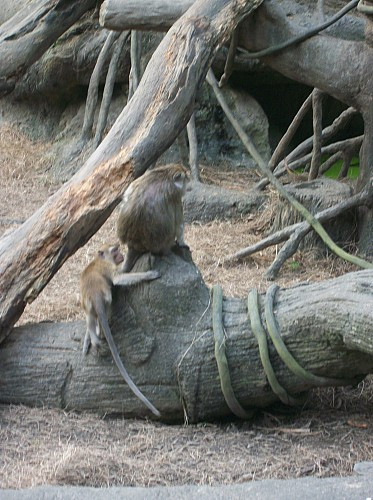 猴子也很可愛喔,小猴跟在母猴的後面再撒嬌,好害羞。