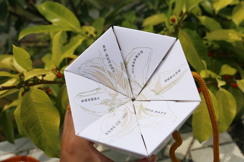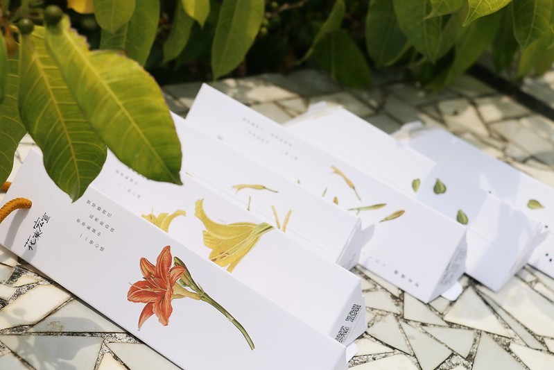 上面印有金針花的圖案及花語,文青而典雅
