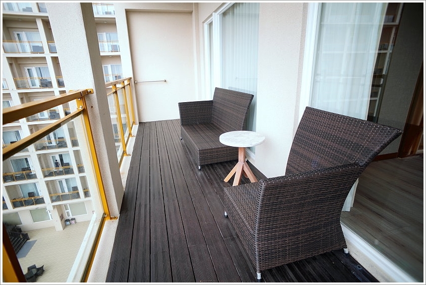 ▼這間特別的是還擁有雙陽台,分別是4.5坪及3坪,但同樣都非常寬敞夠用!兩個人還可以坐在這裡欣賞風景、放空、聊天,免出國就能享有彷如海島度假的美好時光,真的很棒!