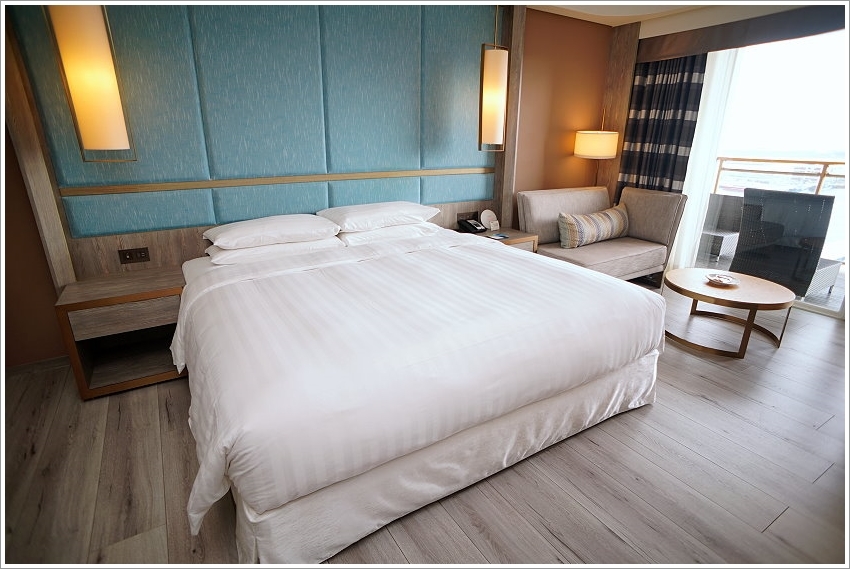 ▼登愣!這間就是我們這次入住的港景豪華雙人客房,不僅有12坪的寬敞空間,還有一面超大的落地窗,外頭就是一個獨立大陽台,整體採光相當好!