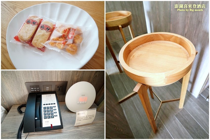 ▼桌上也有提供簡單的小餅乾,讓大家可以解解饞!進門的一旁還放有一張木製的仿古洗臉盆,可以在上頭放一些小東西比較不會忘記,像是房卡、手錶之類的~另外桌上也有電話、時鐘,還有鬧鐘功能唷!
