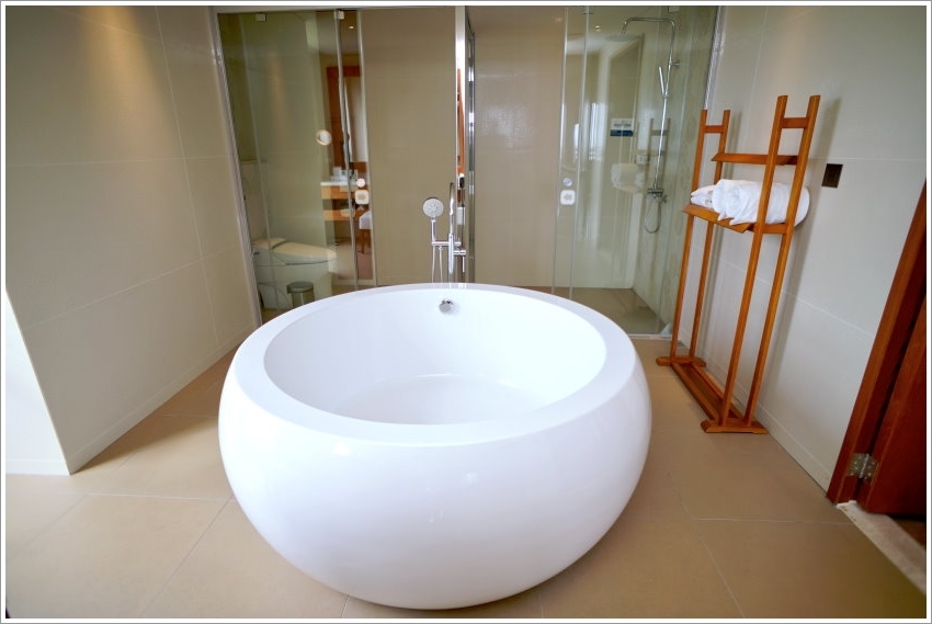 ▼浴廁空間中,最最最特別的就是這個浴缸啦!不管是大人、小孩看到這個浴缸都為之瘋狂,圓滾滾的造型真的太可愛了,大家還可以模仿杯緣子坐在側邊拍照,整個很像放大版的咖啡杯XDD而且乾溼分離的設計非常好用~