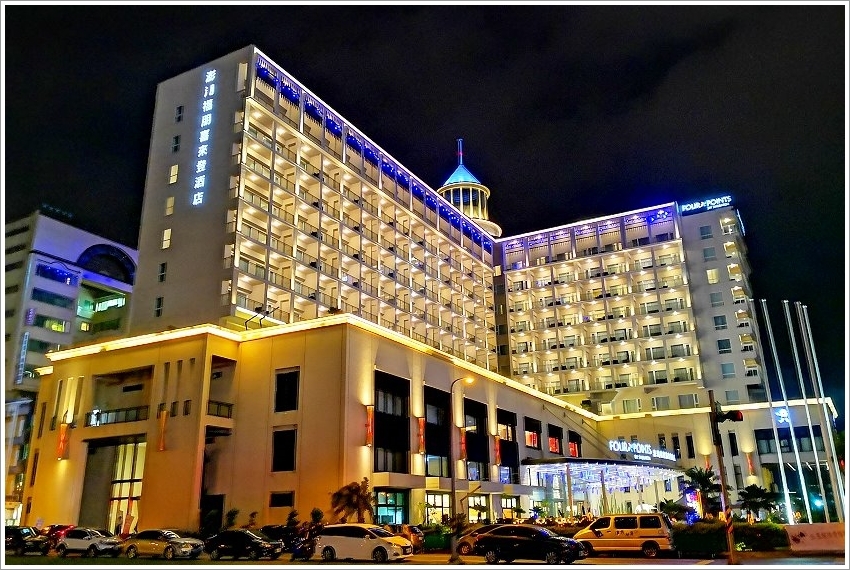 ▼晚上的「澎湖福朋喜來登酒店」打燈後變得更美更吸睛,整個就像是座城堡一樣夢幻滿分啊!