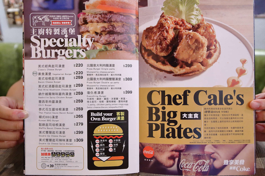 提供有開胃小品、排餐、早午餐、果昔...等,主角還是漢堡啦!