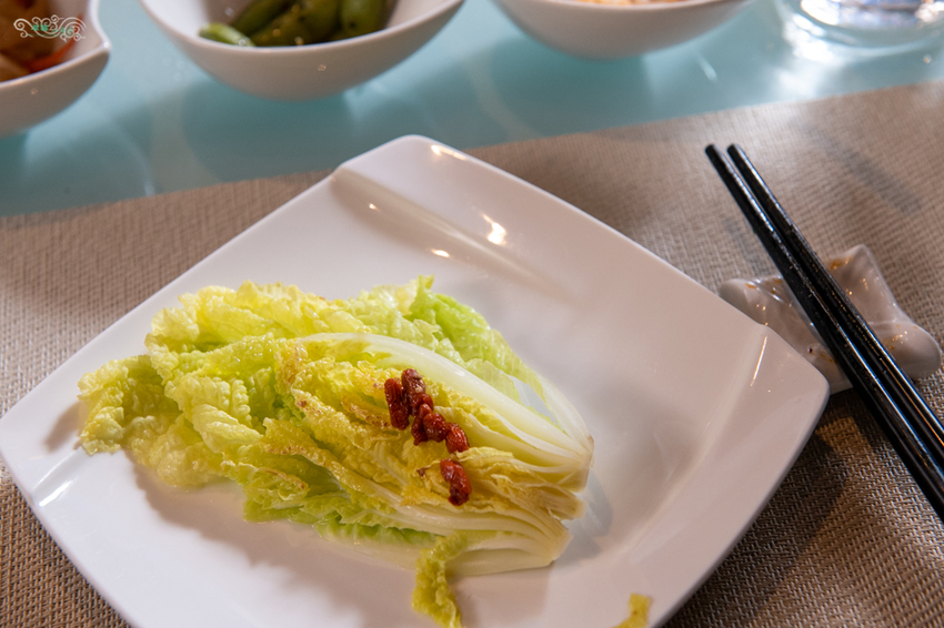 娃娃菜的甜味很明顯,上方是先用水燙過的枸杞,不論是在味覺與視覺上,都起了畫龍點睛之妙。