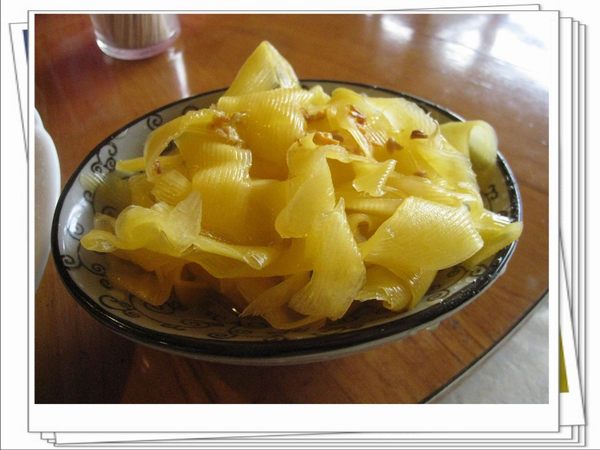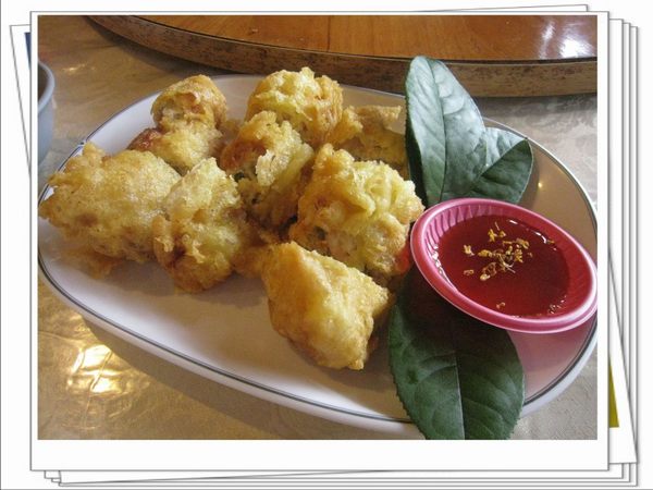 如果單將這一道當作是腐皮捲來吃的話,味道還不錯,饅頭很喜歡這個味道。不過可能因為這一道菜是炸過的。感覺上桂花的氣味也是不足,吃不太出來。(也可能是我味覺不佳吧!饅頭說他有吃出來……不知道真的還是假的~XDD)