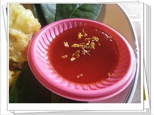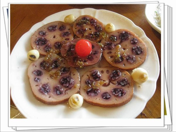 這個蓮藕吃起來蠻脆的喔,中間還鑲有紫糯米,加上桂花醬的香甜口感,讓人吃了還想再吃XDD,意猶未竟呀~~。這一道我很喜歡,可惜沒有宅配呀,不然一定宅配一堆放在冰箱慢慢的啃食~