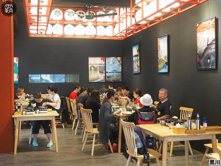 一進去就會看到有個紅色的日式鳥居,上頭同樣有掛著「黑川」字樣,再過來座位區還有日式燈籠掛在正上方,搭配紅色的燈架一整列看過去相當有氣勢。