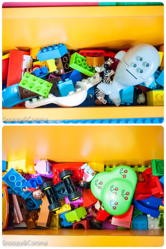 積木桌裡有著滿滿的積木與各式各樣組合零件,
