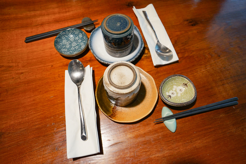 雕之森樹屋餐廳選用了日式陶藝餐具,讓這充滿藝術氣息的空間,多了一絲溫馨感;我們聽著雨、等待這場美食饗宴開始。