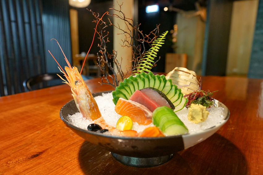 過去以日式餐點聞名的雕之森樹屋餐廳,刺身仍是套餐的一部份,鮮紅欲滴的牡丹蝦和鮭魚、旗魚、鮪魚現切擺盤,滑嫩順口。