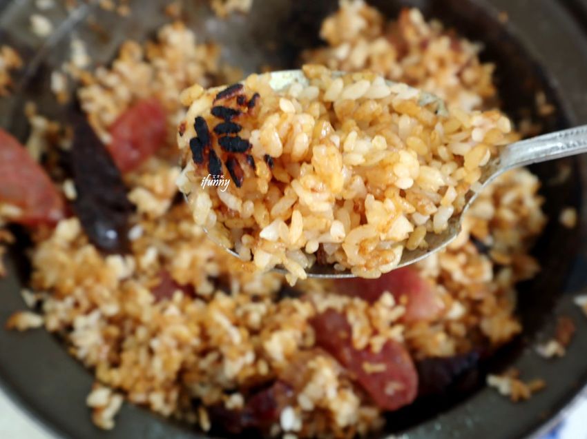 來看看這臘味煲仔飯在攪拌時,所產生的香氣及鍋巴實在太迷人了!