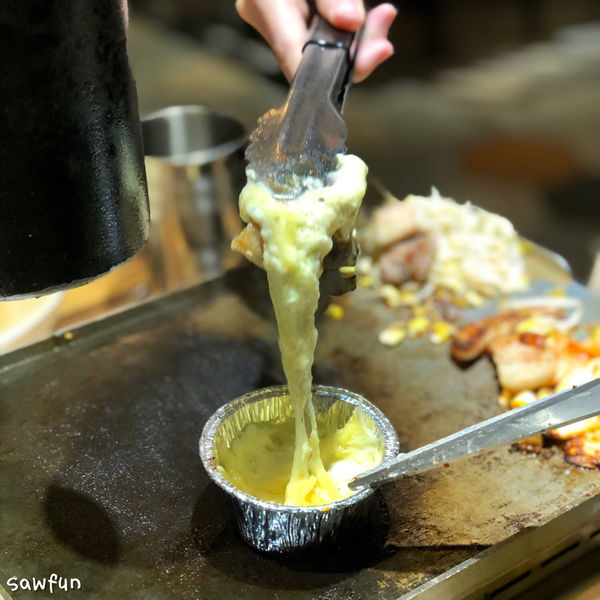 餐點含(上等三層肉/極上松阪豬排/薄切上等梅花肉/秘傳味增醬三層肉)、十二宮格配菜、墨西哥捲餅4片、香濃起司、海鮮豆腐湯鍋以及鐵板炒拌飯