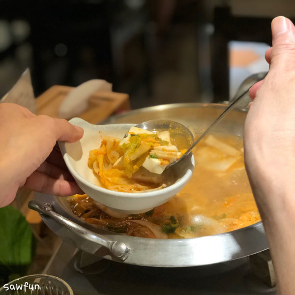海鮮鍋裡頭泡菜不會太辣裡面還有Q彈的年糕