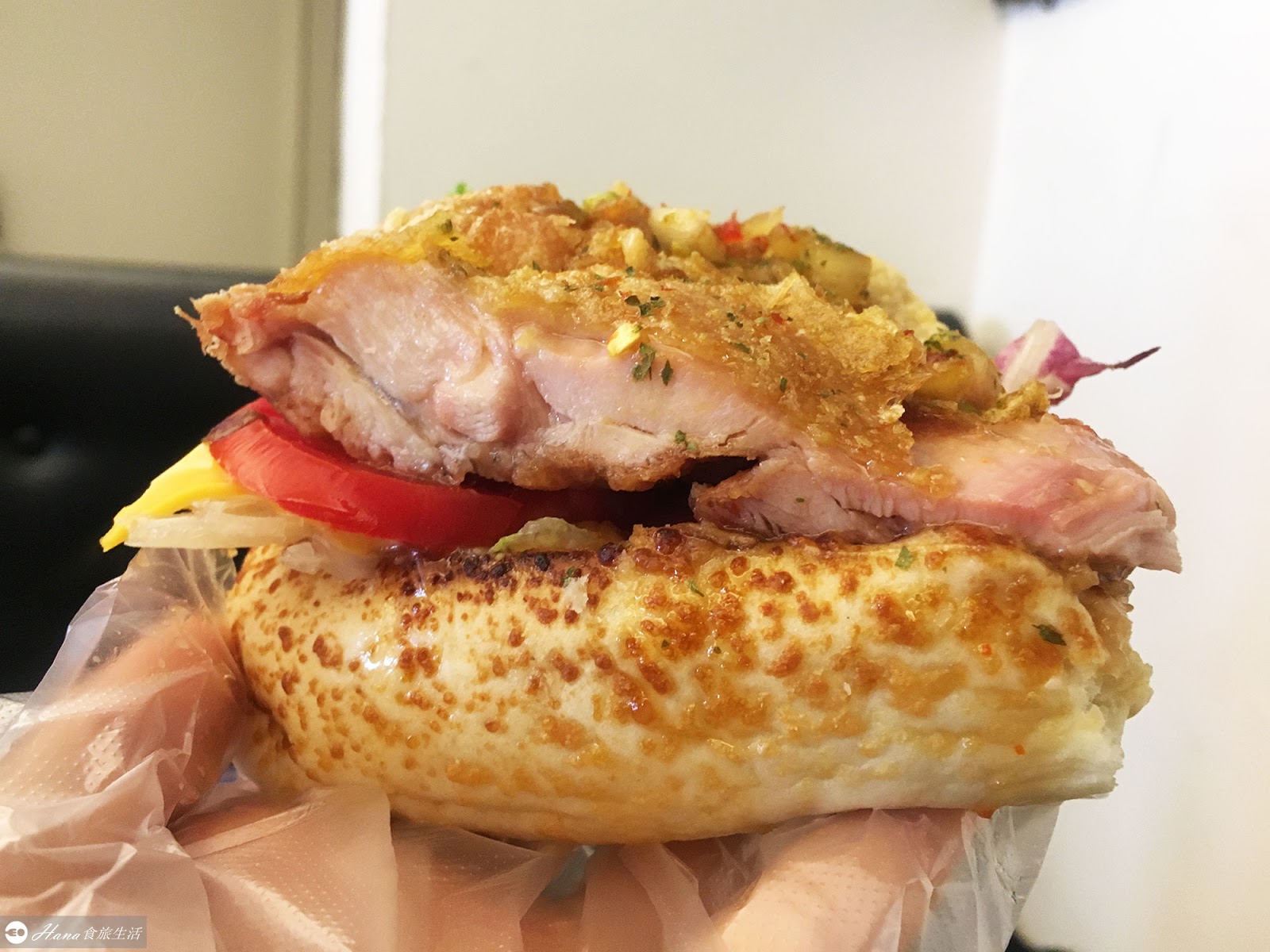 一大口咬下去,椒麻雞的酥脆、雞肉的軟嫩彈牙、軟法的鬆軟好咬,
