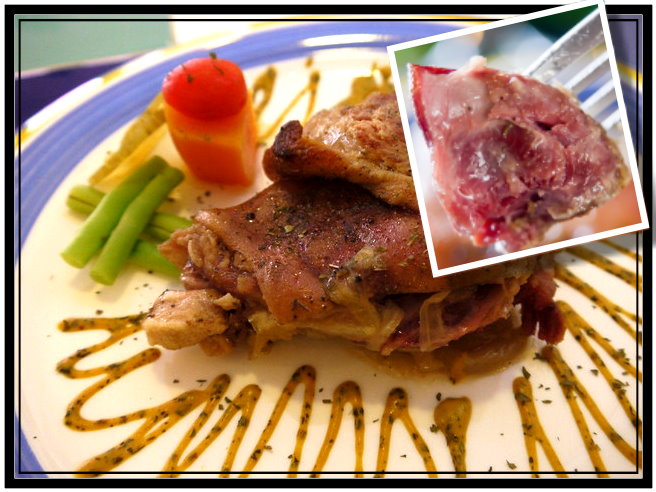 鄉村豬腳佐蜂蜜芥末醬,肉好嫩皮QQ的,跟德國豬腳不一樣,這也好吃!