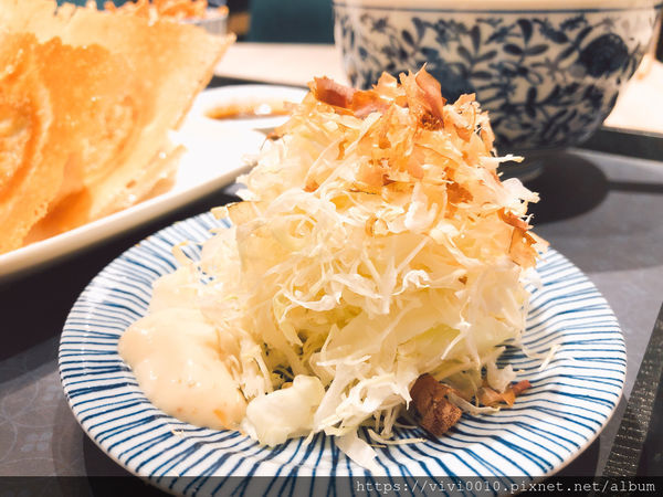 套餐中附上的胡麻沙拉,主要以高麗菜絲為主,吃起來相當爽脆,又可解煎餃的油膩