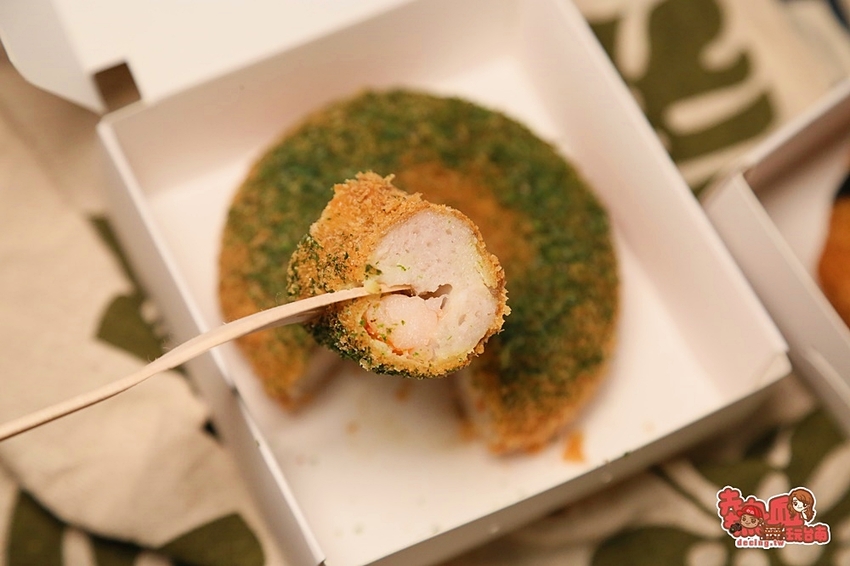 這款海味甜甜圈是我這次吃下來最喜歡的一道,裡面夾了滿滿的海味啊!裡面包裹了整尾的蝦子,搭配上內餡的肉和酥脆的外皮~真的是我的心頭好!