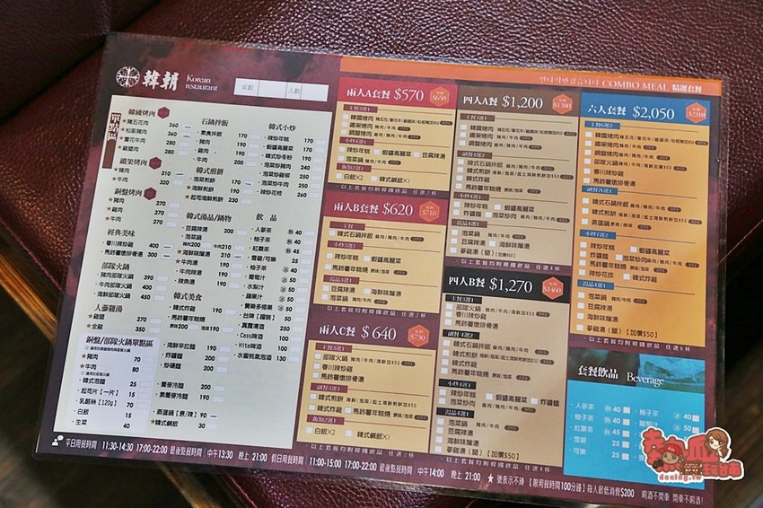 店家點菜方式分為單點及套餐兩種,雙人套餐選擇又分為ABC選項,另還有四人及六人組合套餐,如果你跟心愛a一樣有選擇障礙,也可以參考套餐方式價格也相對優惠哦~