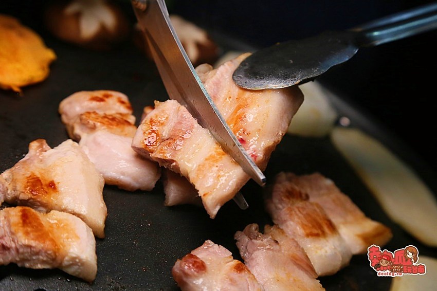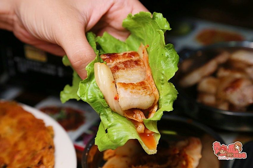 愛吃肉的朋友們絕對不能錯過這一道經典,特別又是自己烤的可是更好吃啊~看鐵盤上那豬五花油亮油亮的,煎到出油外皮上了一層金黃色可是更迷人!把煎烤好的豬肉切成自己好入口的大小即可,建議可以包著菜葉和泡菜一起吃,嘿嘿~可是會更對味的唷!