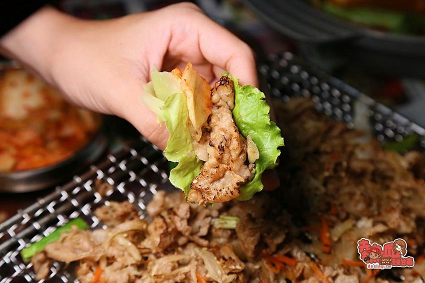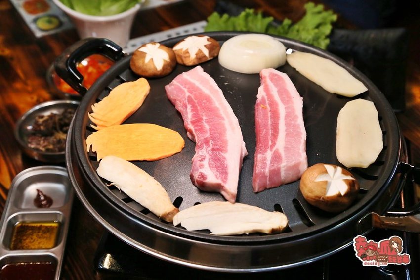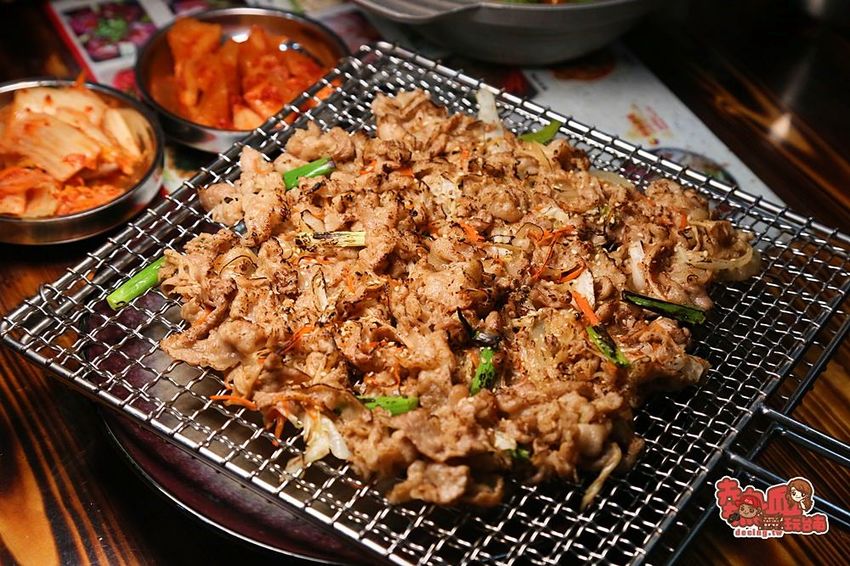 這次我們一共四個人來用餐,選擇了雙人C餐再搭配其他單點的方式點餐,這份豬五花鐵架烤肉是最近韓朝所推出的新品,吃起來口味很不錯耶~如果中秋節不想要烤肉,也可以來韓朝體驗另類的中秋大餐,而這道熱血覺得是必點喔!