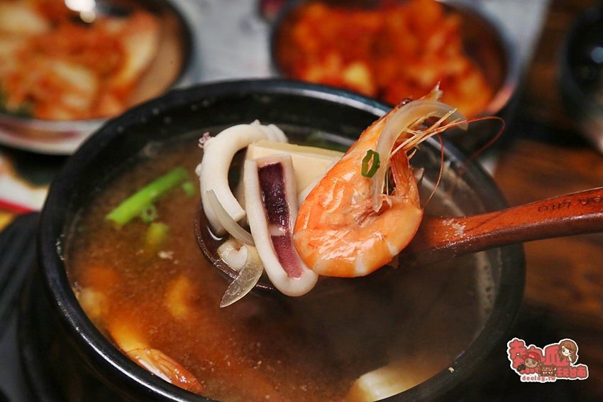一上桌還在冒煙的畫面光看就過癮,有別於台式味增湯,韓式濃郁的海鮮味增口感偏重,與蝦子、蛤蜊等海鮮料理下去煮,讓湯頭多了點清甜味,一口湯一口招牌韓式鹹飯這樣吃,也很過癮呢!
