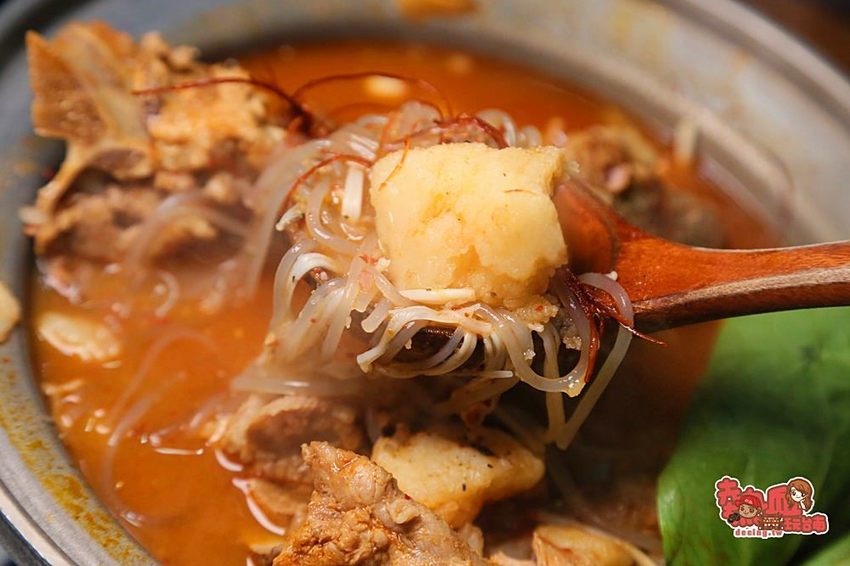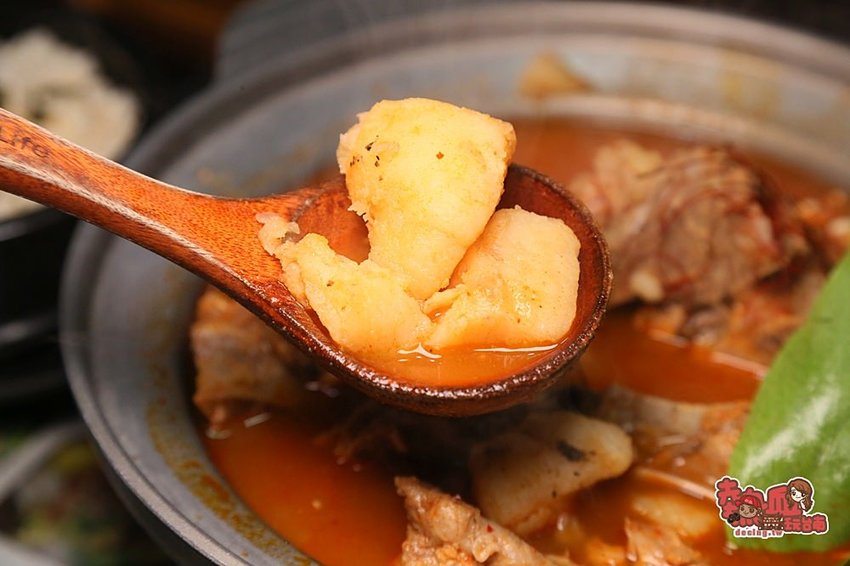 豪氣的以整塊排骨燉湯,馬鈴薯也煮到透爛,不只能喝到濃厚湯底的大骨香氣,尾勁帶點清甜是而稍稍微辣的口感,不只好喝而且更開胃,真的是一道讓人很意外的料理,就連不愛喝湯的熱血都直說讚,本來想加湯,一問之下才知道這個沒在加湯的啦XD藏在鍋底下的韓式冬粉吸附了飽滿的湯汁,吃起來口味更是恰到好處。