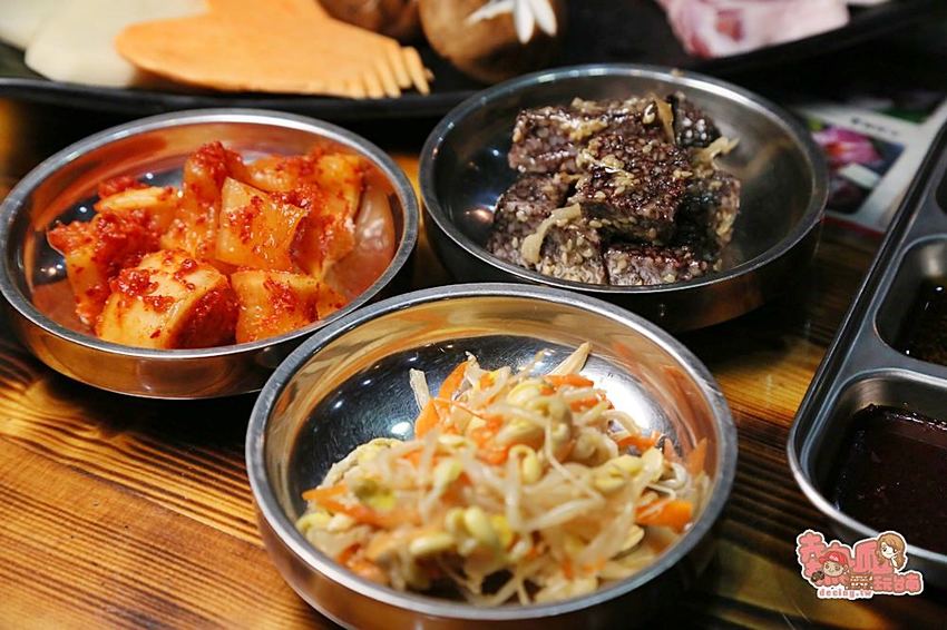 而店家所提供的12種小菜,種類及樣式也多,基本款的泡菜、泡菜蘿蔔、海帶牙還有米血等,除此之外~飯後甜點也有哦,這些都是無限量供應,補菜速度也快,光是這些就能讓你先稍微舒緩飢餓的肚子囉~