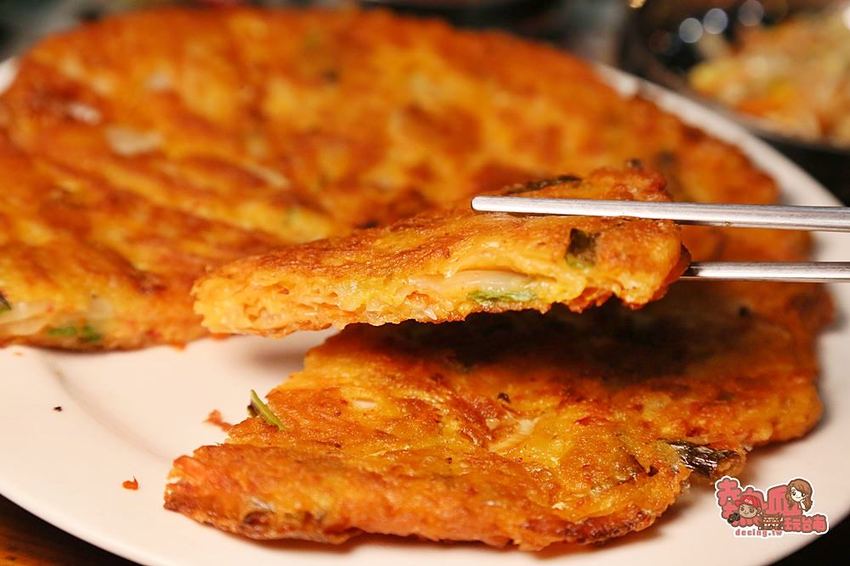 韓式煎餅是我們每次來必點的一道,這次選了泡菜口味,餅皮煎至金黃焦香,經過熱血拍照後,煎餅再到心愛a口裡依然酥脆好吃~配上微甜的醬料口感更是美味^^