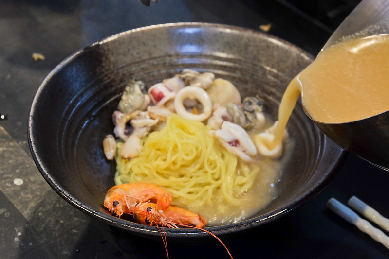 湯頭的部份有五種選擇:港口原味、相撲(味噌)、韓式歐爺(微辣)、泰式(冬蔭功)、娘惹叻沙