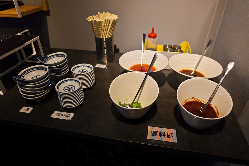而除了小菜之外比較特別的是因為主要提供的是麵與湯飯,有些人會覺得味道想要依自己的口味調整,就可以來這拿個碟子裝一些醬料