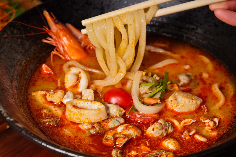 湯頭是馬來西亞風娘惹肋沙,酸辣中多點椰奶風,也蠻不錯的