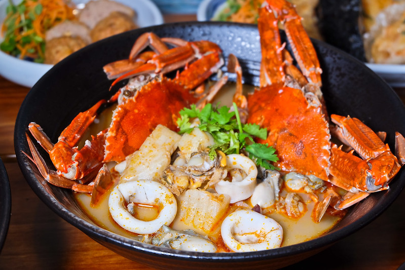 ●翊進上香川海鮮饌食館│超狂霸氣海鮮-花蟹2隻搭配讚岐烏龍麵(娘惹叻沙) (NTD 299 )
