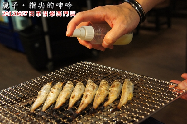 最後把烤熟的柳葉魚翻過來,噴上檸檬汁,