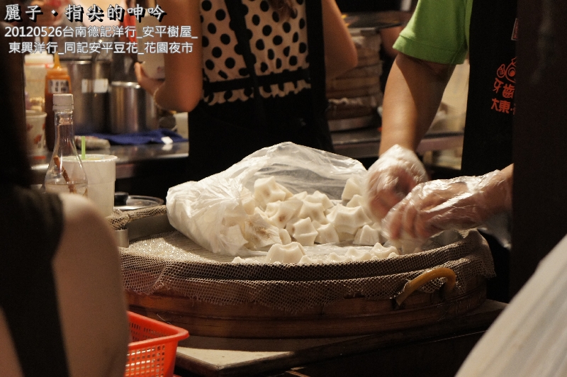 牙齒肉圓生意很好,旁邊的員工正在把冷凍的肉圓擺在篩子上,準備要蒸煮嚕。