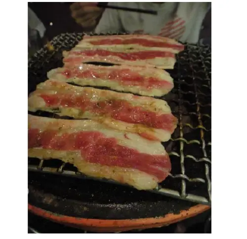 不過第一次我把鹽蔥放在烤架上,結果肉黏在烤架上,
